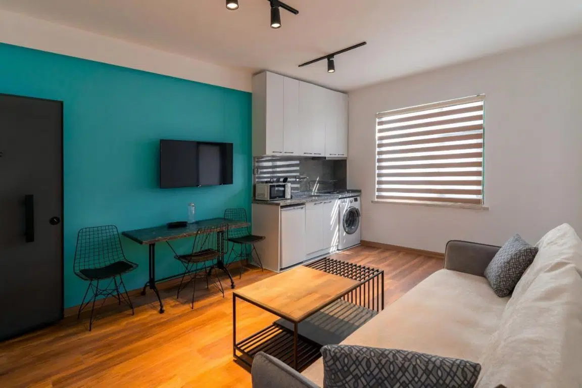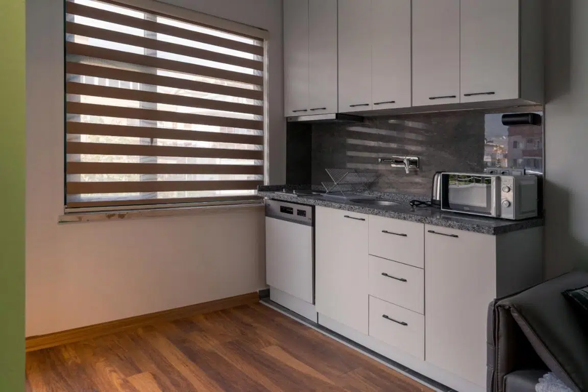 Çamaşır makinesi, buzdolabı, ocak gibi tüm ev aletlerinin bulunduğu odalarımızda konforun keyfini çıkarın.